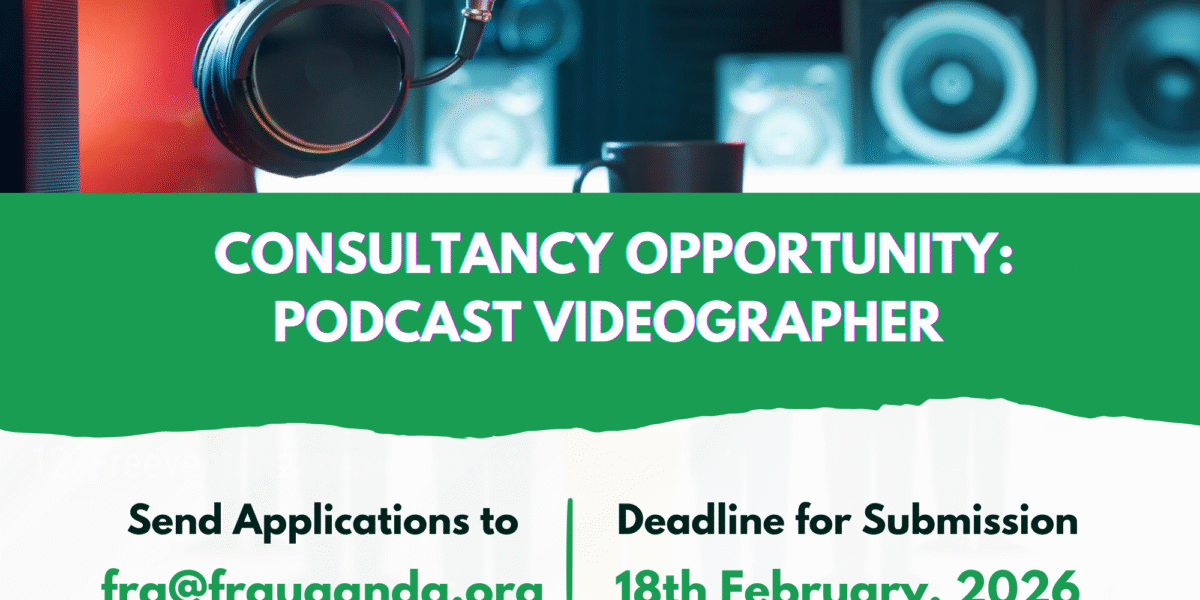 Interested service providers must demonstrate proven experience in podcast and audiovisual production, access to professional filming equipment, strong storytelling skills, and the ability to manage multi-location production teams. Full details of the scope of work, deliverables, qualifications, and submission requirements are outlined in the Terms of Reference (TORs)– https://fra.ug/wp-content/uploads/2026/02/TORs-PODCAST-VIDEOGRAPHER-FRA.pdf